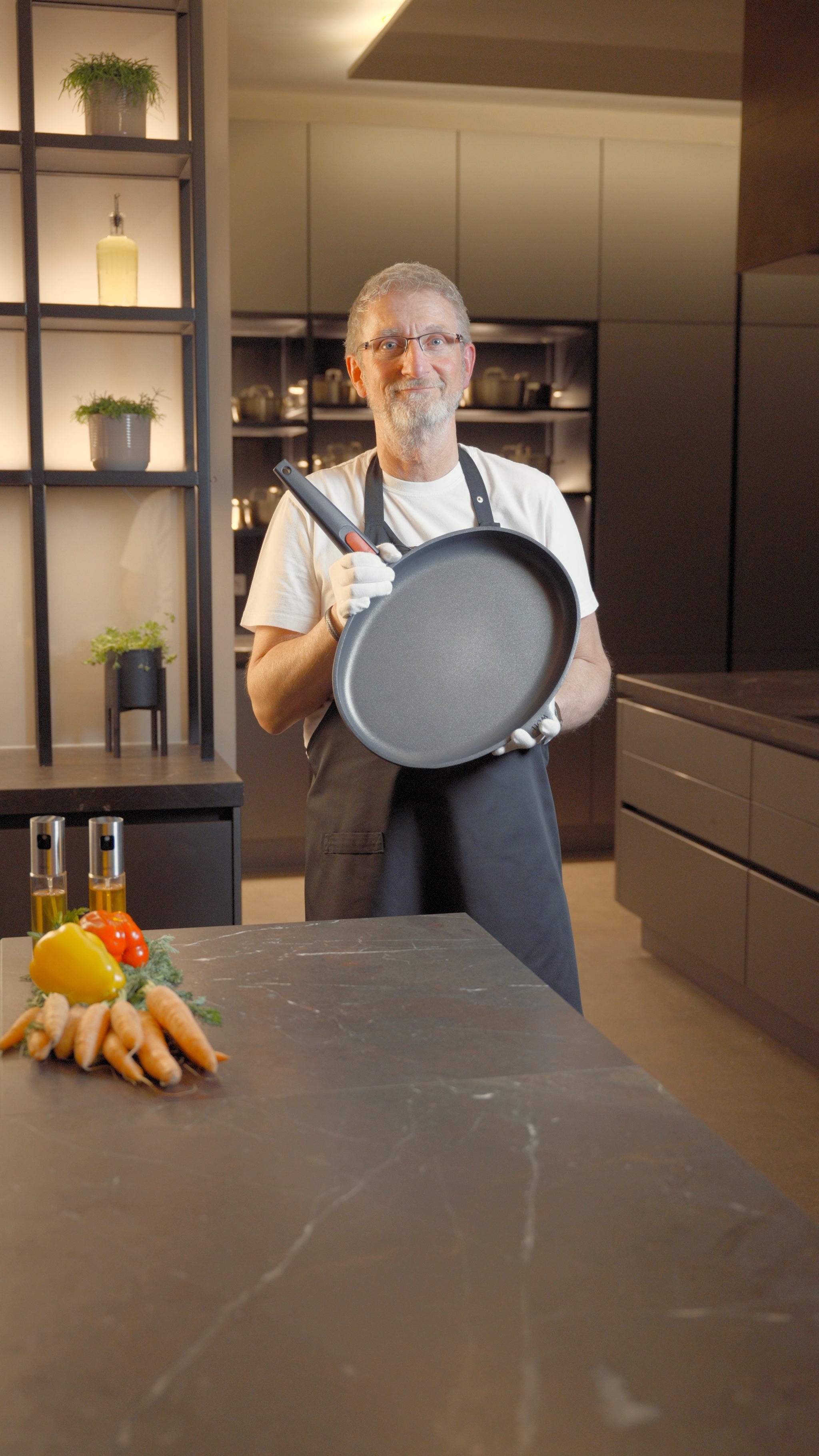 Der abnehmbare Griff ermöglicht es die Pfannen flexibel und platzsparend zu lagern. Entweder nebeneinander oder gestapelt. Dafür eignet sich auch optimal unser Pfannenschutz.